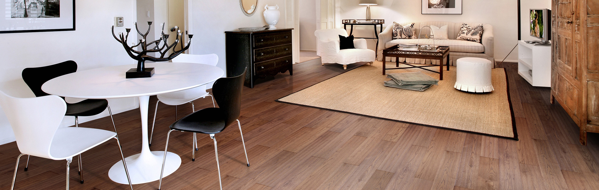 房间与房间、房间与客厅的连接处以及地板宽度方向超过5米的地方必须断开,采用“T”字型上海慕艺木业有限公司专用压条隔断,用“L”型上海慕艺木业有限公司专用实木踢脚线收边。